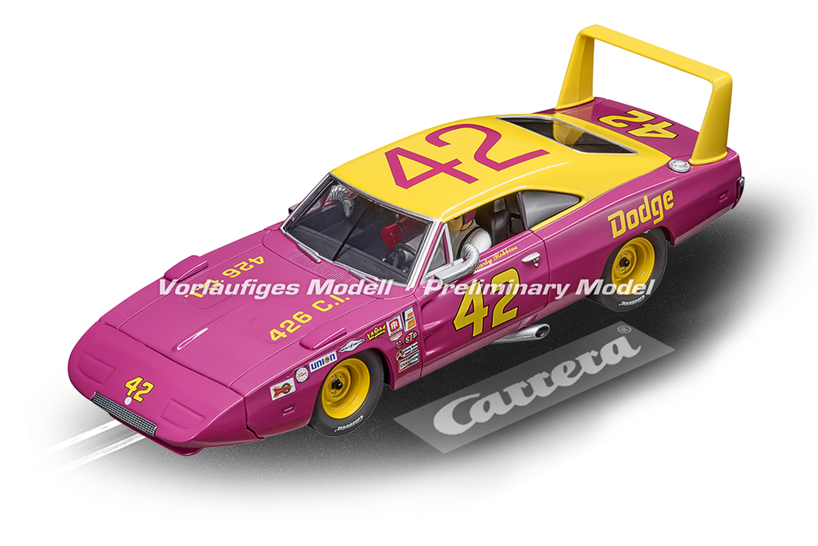 Dieses Fahrzeug des Herstellers DODGE wurde von Carrera im Jahr 2020 ins Sortiment aufgenommen. Der Maßstab ist 1:32 und das Fahrzeug ist für das System Carrera Evolution gedacht. Die offizielle Artikelnummer dieses Fahrzeugs bei Carrera lautet 20027638.