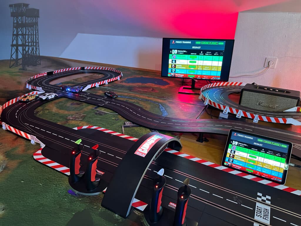 SmartRace ist eine Software für Mac, Tablets und Smartphones und dient zur Zeitnahme für Carrera Digital-Bahnen im Maßstab 1:32 und 1:24 und über den Analog-Modus auch für analoge Bahnen (z.B. Carrera Evolution, Carrera Exclusiv, Carrera Servo, Carrera Go!!!, Ninco, Scalextric oder Andere). SmartRace verbindet sich entweder per Bluetooth mit dem AppConnect-Adapter von Carrera oder nimmt die Messung im Analog-Modus per Kamera eines über SmartRace Connect verbundenen Smartphones vor.