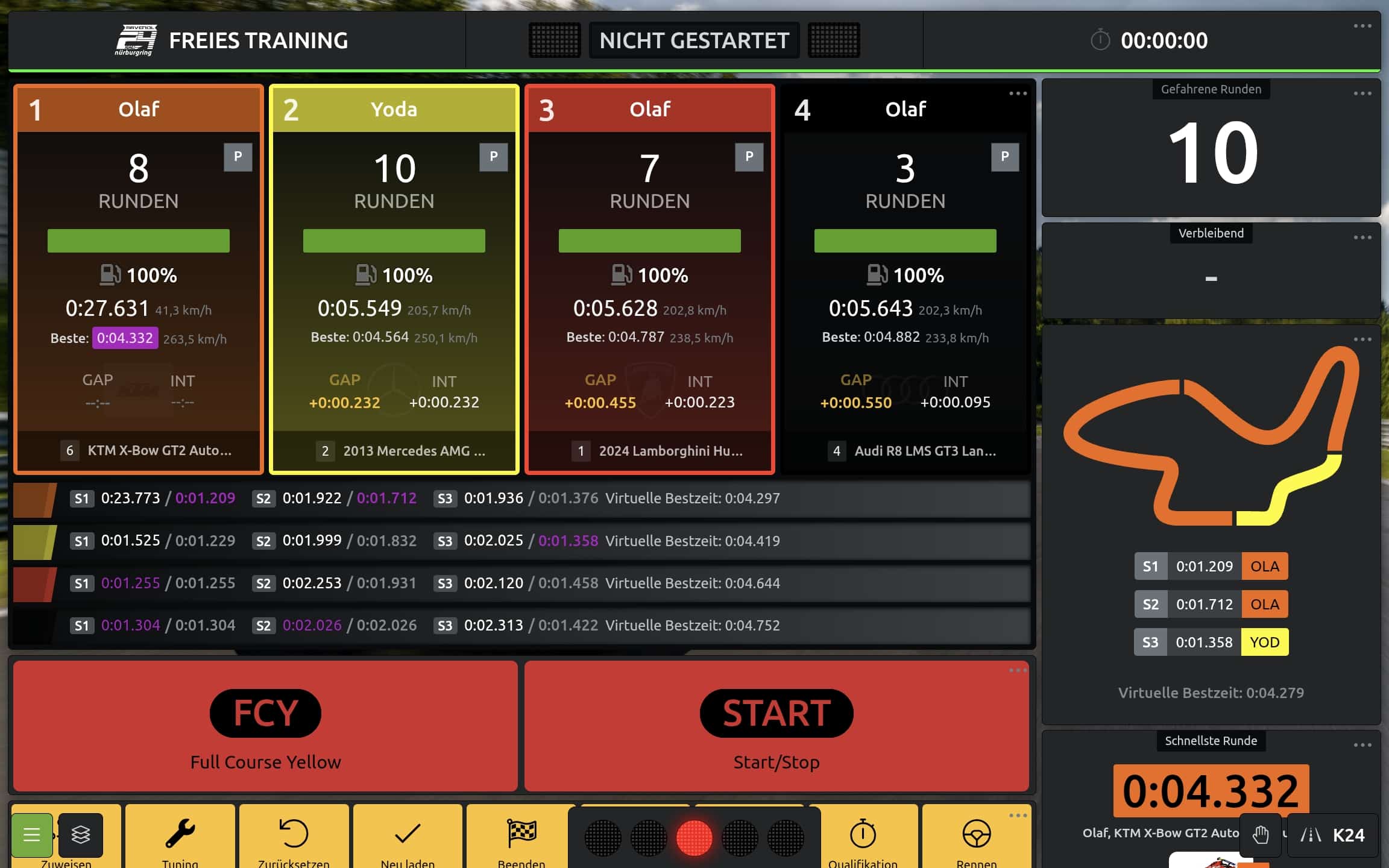 Allround-Rennbildschirm für Qualifying, Rennen und Training bis 4 Fahrer. Weitere Widgets sieht man beim scrollen, standardmäßig ist oben alles wichtige für das aktuelle Event.