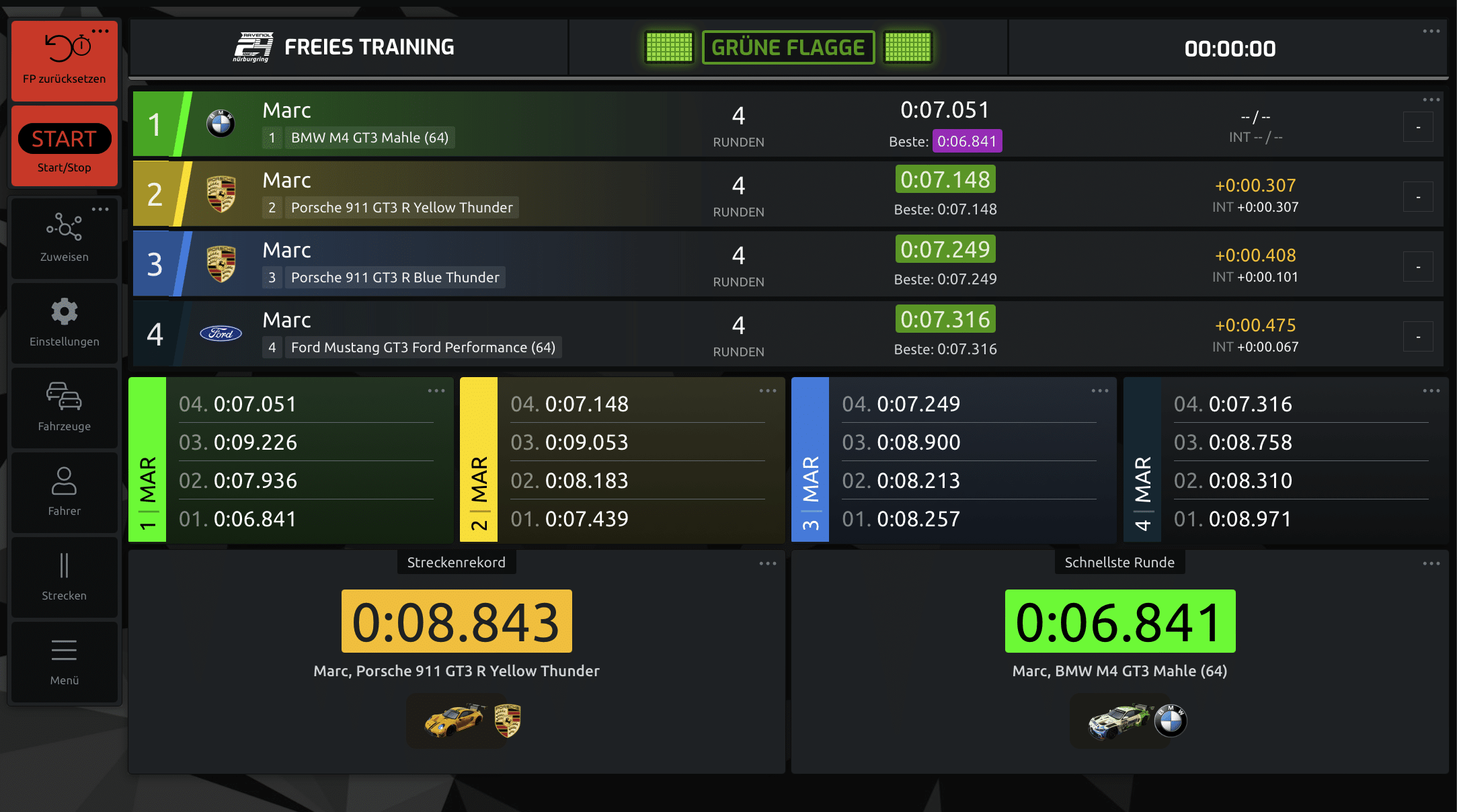 Ideal, wenn man die Rundenzeiten mehrerer Fahrzeuge miteinander vergleichen möchte.