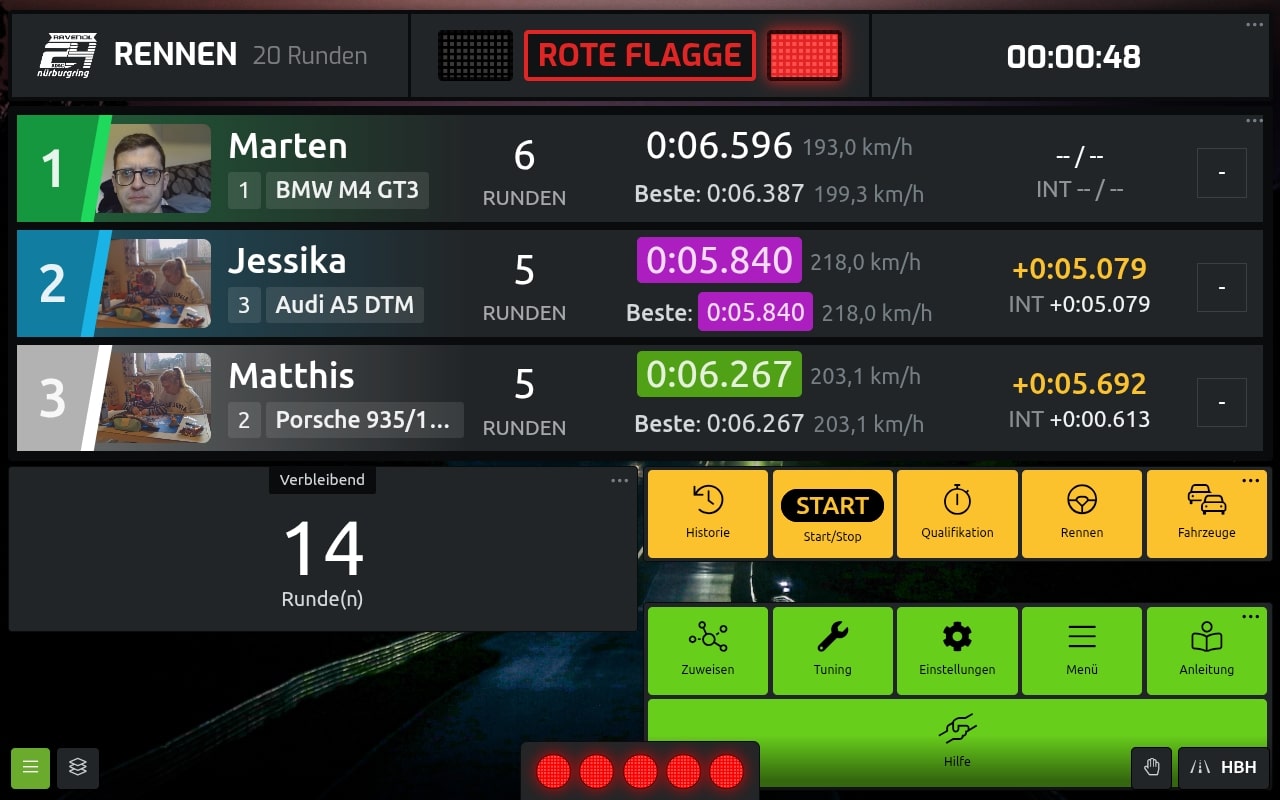 Und so kannst Du diesen Rennbildschirm in SmartRace verwenden: