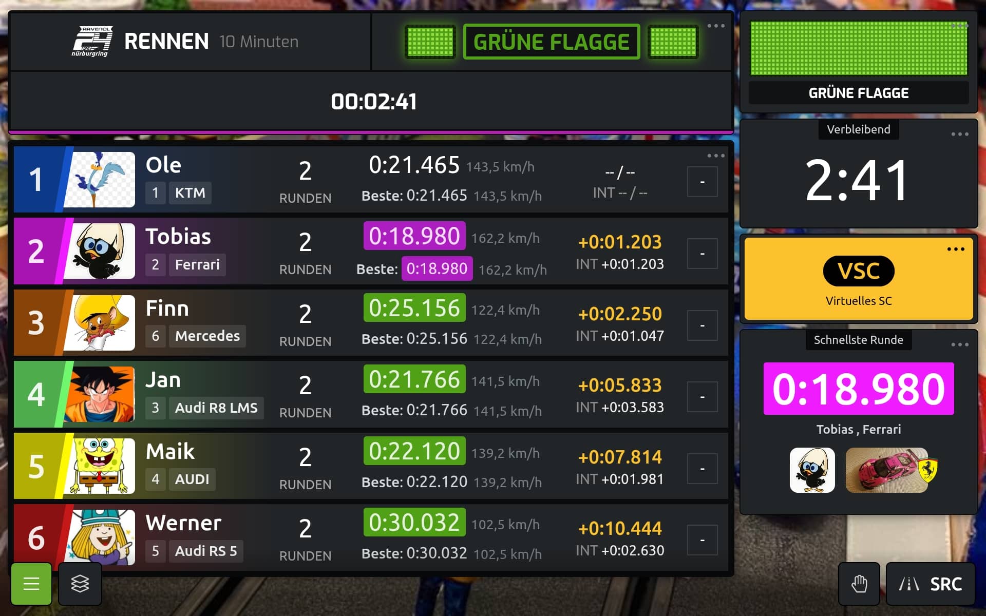 Und so kannst Du diesen Rennbildschirm in SmartRace verwenden: