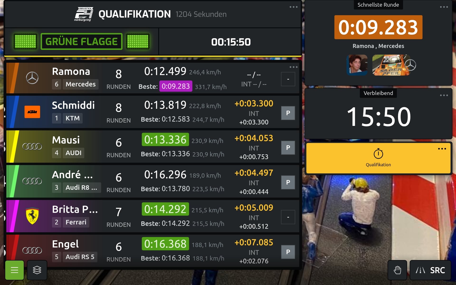 Ich habe jeweils die Bestzeiten verbleibende Zeit und die schnellste Runde mehr braucht man nicht für, Qualifikation