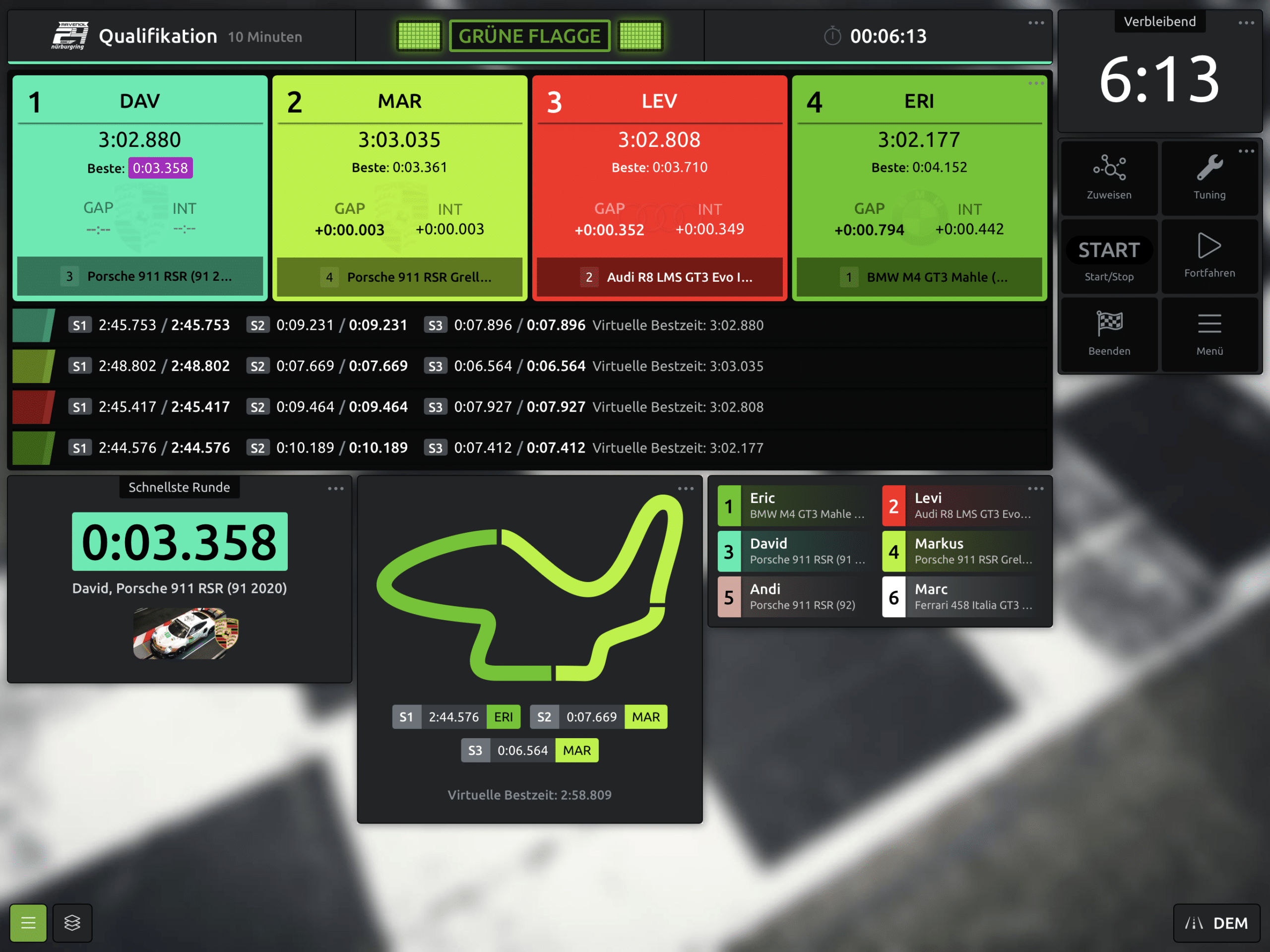 Und so kannst Du diesen Rennbildschirm in SmartRace verwenden: