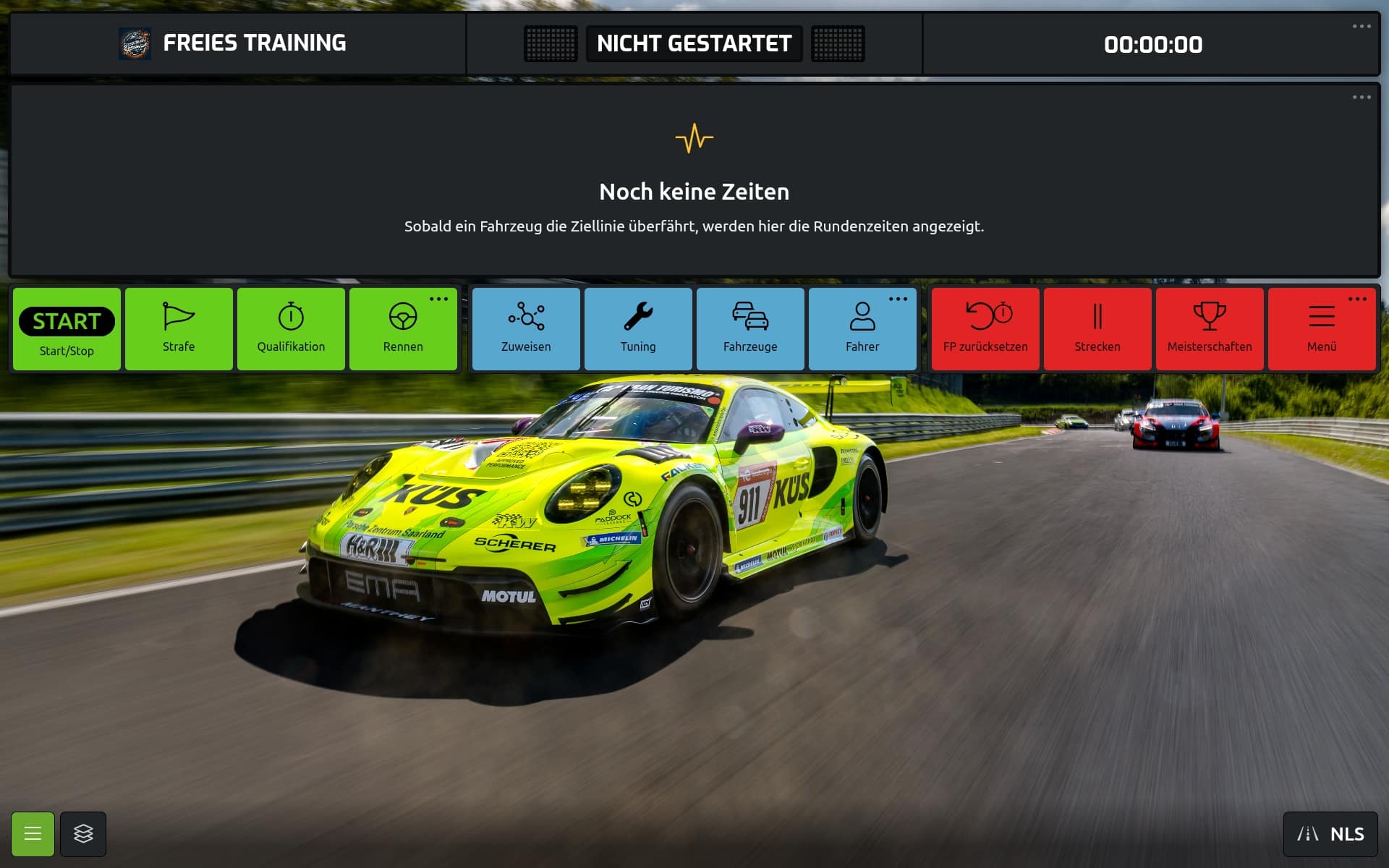 Ein einfacher übersichtlicher Bildschirm für Rennen und freies Training. Für bis zu 6 Fahrer.